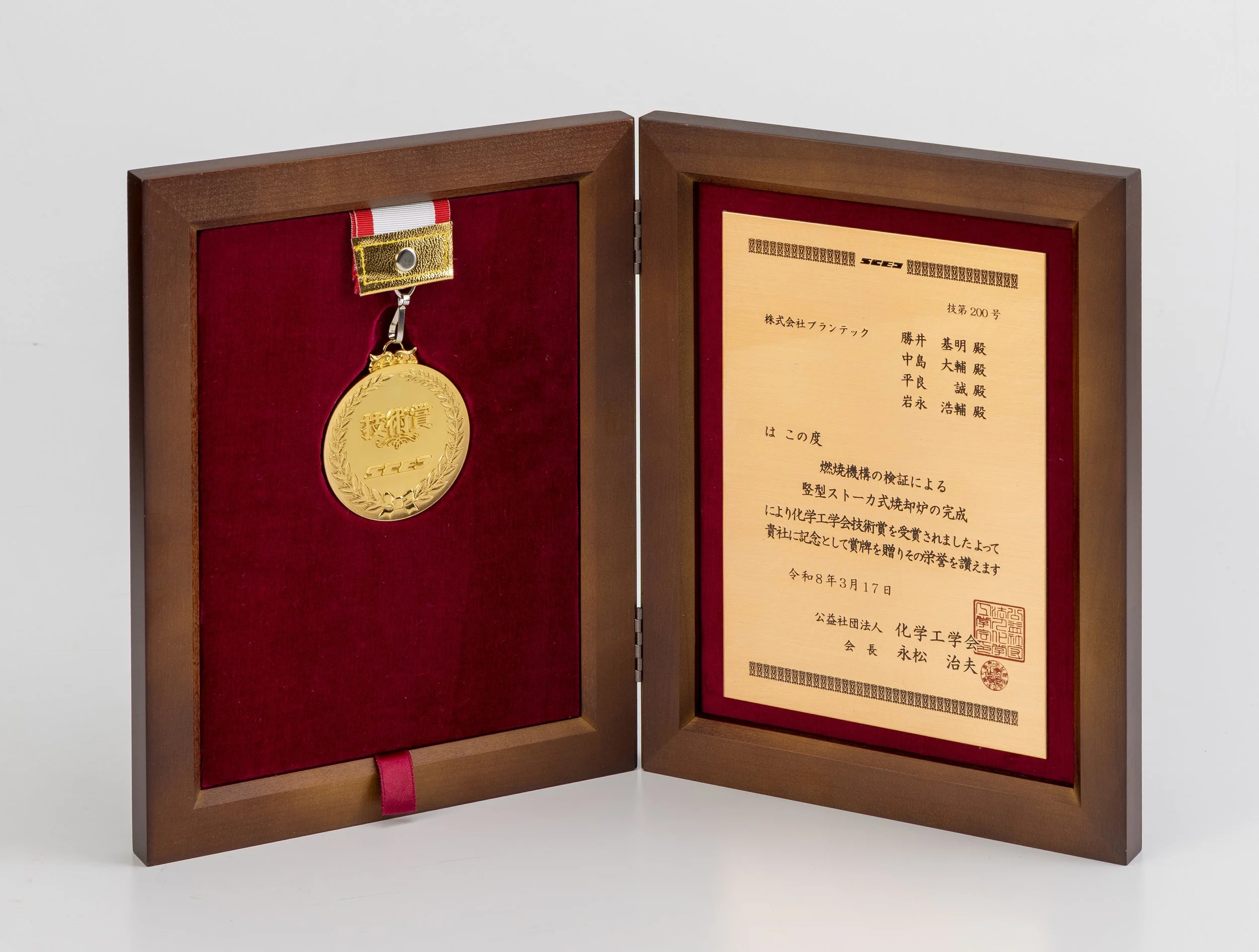 当社は、3月17日(火)に開催された公益社団法人 化学工学会主催の『化学工学会 第91年会』(会場:京都大学 百周年記念ホール)の表彰式において、「化学工学会 技術賞」を受賞いたしました。